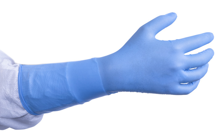 • Utformad med krage upp till armbågen (400 mm) för ytterligare skydd av underarmen och extra skydd mot korskontaminering.