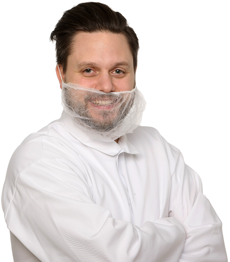 Lätt skäggskydd tillverkad av mjuk, non-woven polypropen (14 g/m²). Materialet är hygieniskt och lätt att andas igenom.. Lämplig för arbete inom livsmedelsindustri och sjukvård.