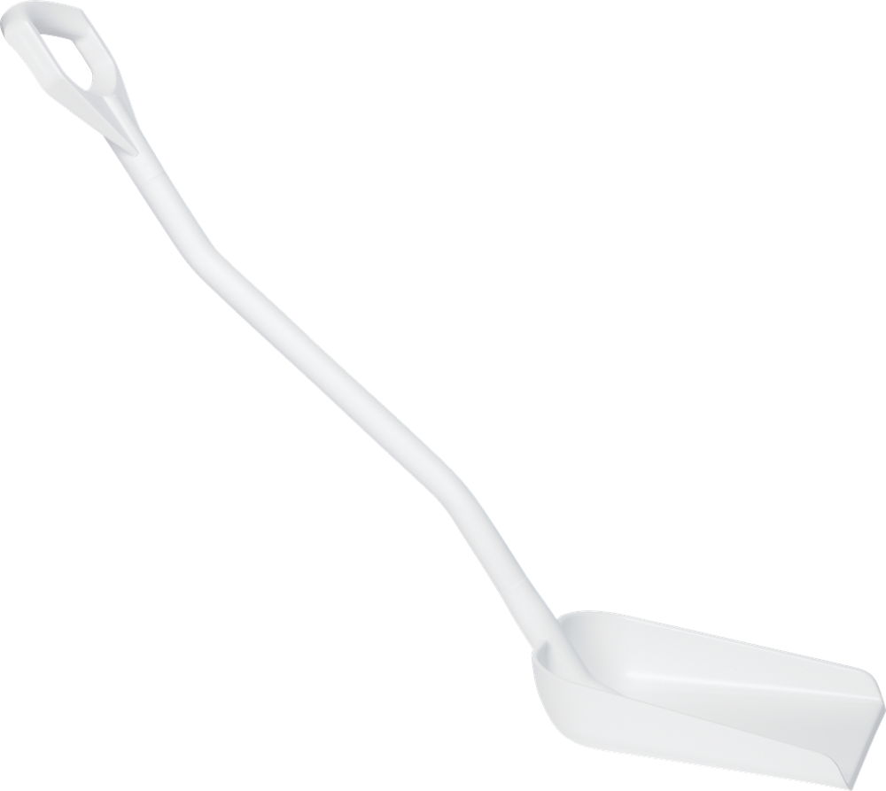 Ergonomisk stabil skyffel med kort skaft och litet blad. Anpassad för livsmedelindustrin.