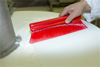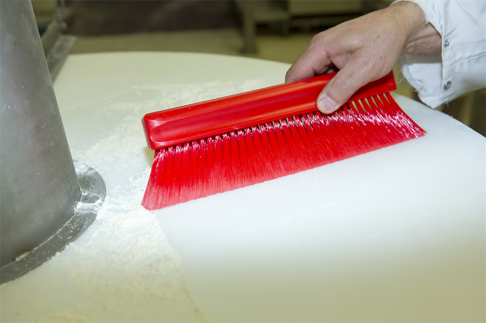 Smidig handborste utan skaft som passar för att ta bort fina partiklar i livsmedelsindustrin som t.ex. mjöl och andra torra fina partiklar.